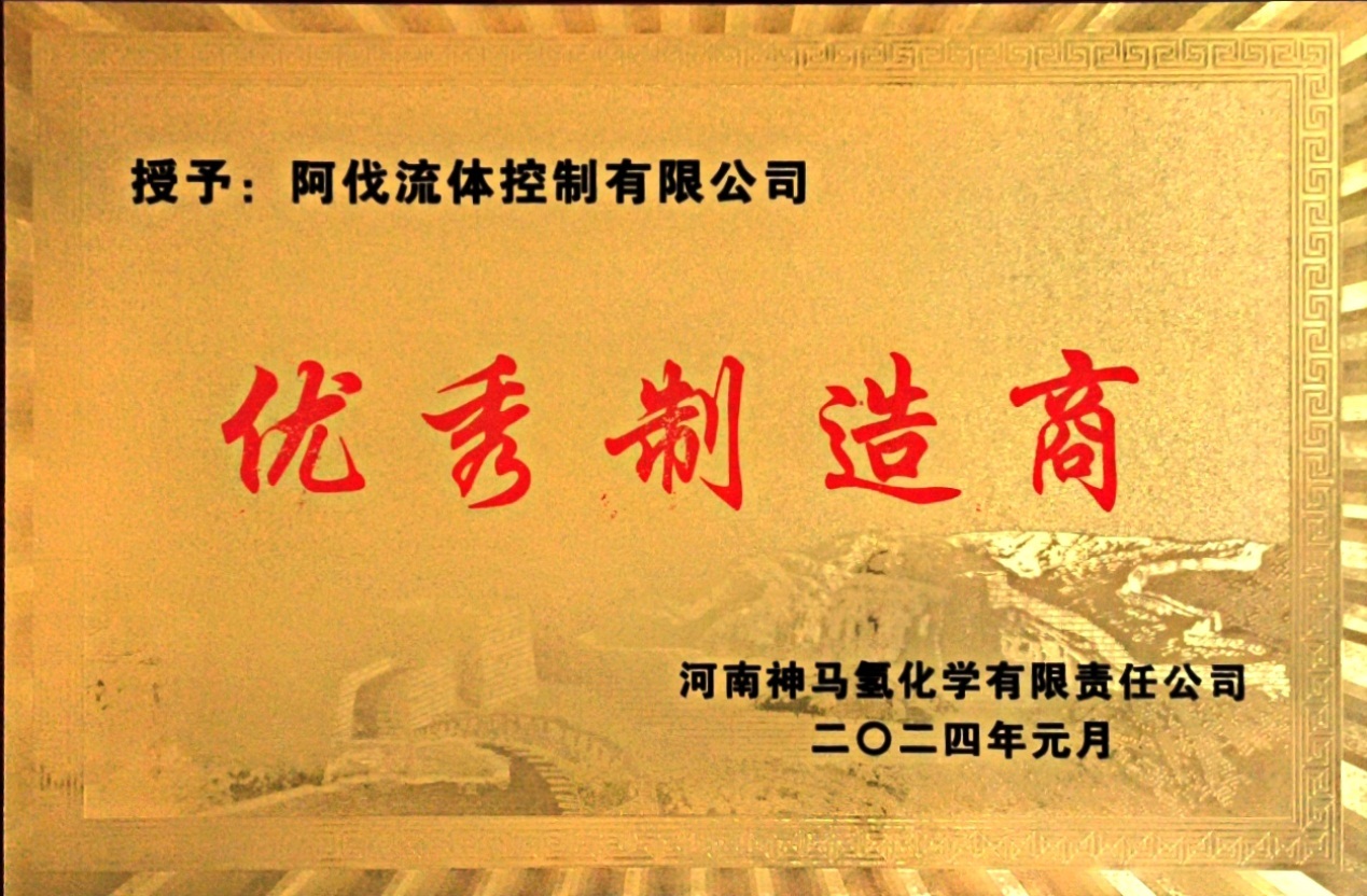 AFA阿伐公司喜获河南神马氢化学有限责任公司“优秀制造商”荣誉